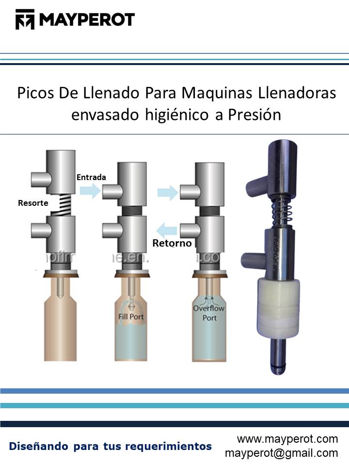 Picos para Llenadora a Presión Fabricados en Material de Acero Inoxidable Calidad 316,